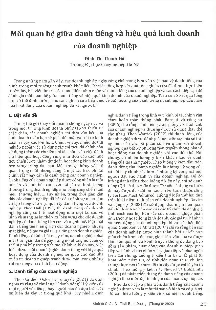 Mối quan hệ giữa danh tiếng và hiệu quả kinh doanh của doanh nghiệp