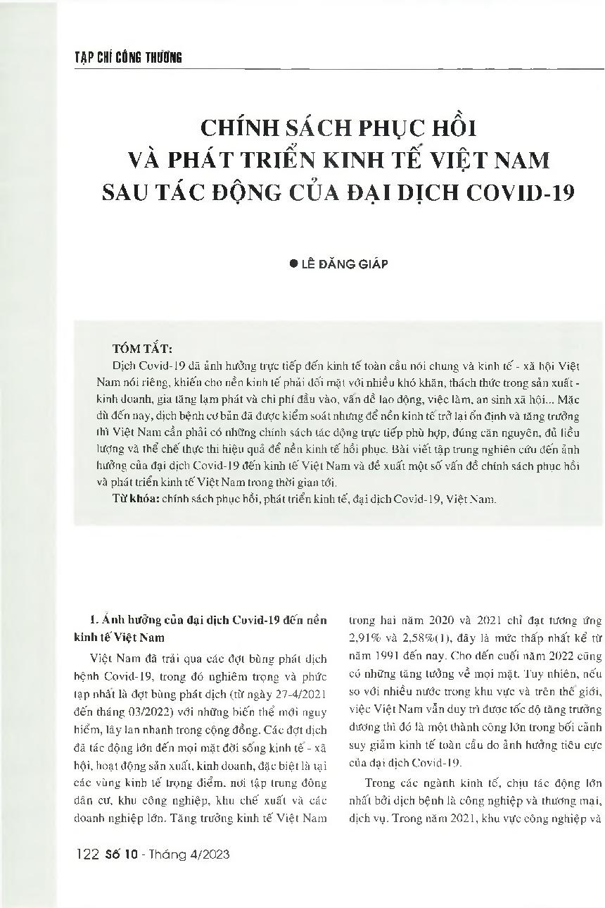 Chính sách phục hồi và phát triển kinh tế Việt Nam sau tác động của đại dịch Covid-19
