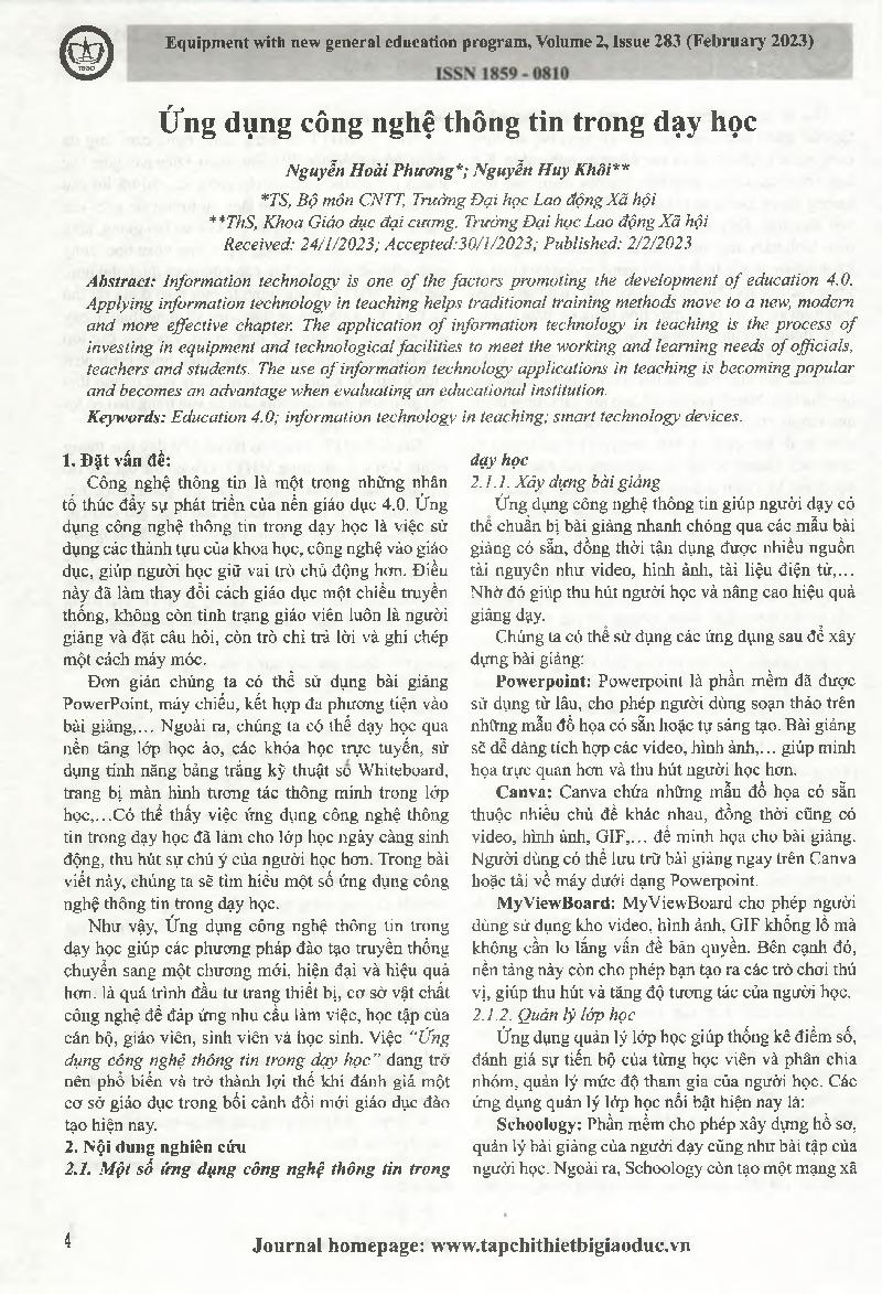 Ứng dụng công nghệ thông tin trong dạy học = Application of information technology in teaching