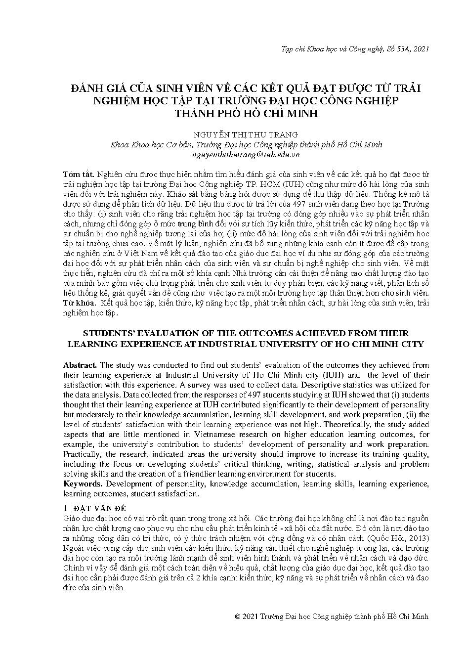 Tác giả: Bùi Thị Thu; Trần Ngọc Như Phương; Thái Nhật Trường;
