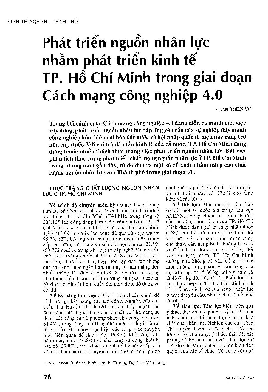 Phát triển nguồn nhân lực nhằm phát triển kinh tế TP. Hồ Chí Minh trong giai đoạn Cách mạng công nghiệp 4.0