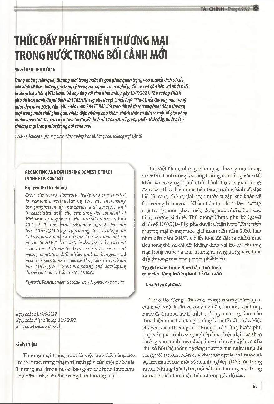 Thúc đẩy phát triển thương mại trong nước trong bối cảnh mới = Promoting and developing domestic trade in the new context