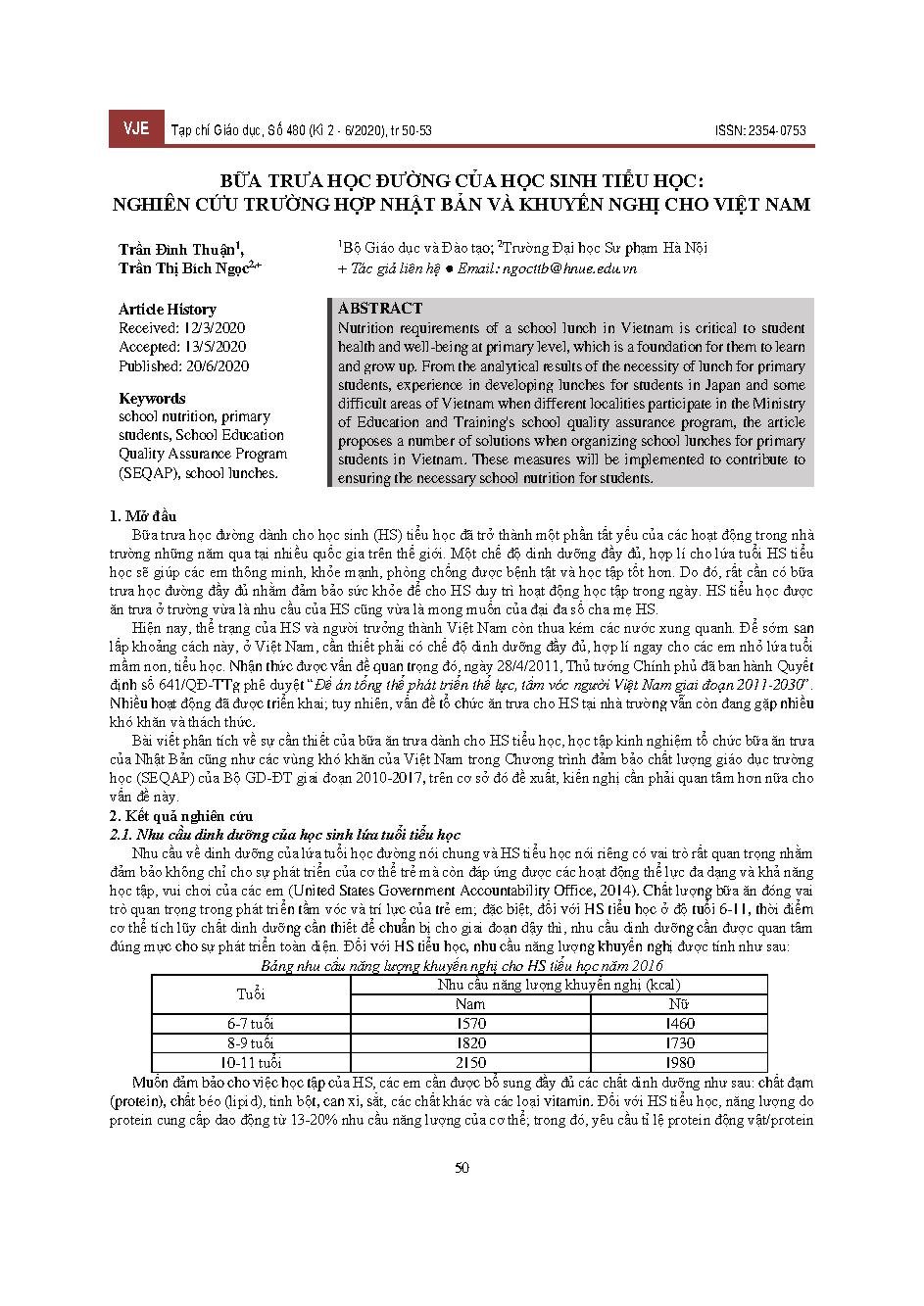 Bữa trưa học đường của học sinh tiểu học: nghiên cứu trường hợp Nhật Bản và khuyến nghị cho Việt Nam = School lunch for elementary school students: a Japanese case study and recommendations for Vietnam
