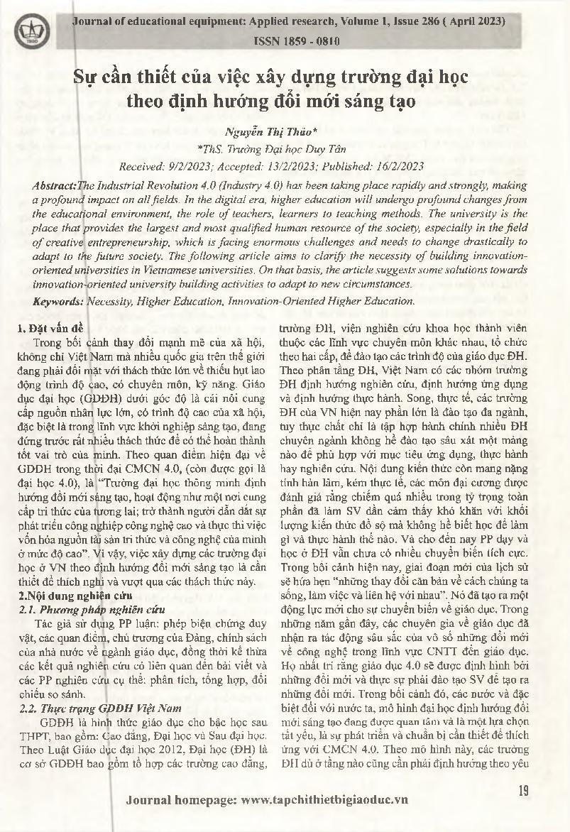 Sự cần thiết của việc xây dựng trường đại học theo định hướng đổi mới sáng tạo = The necessity of building universities with the innovation orientation