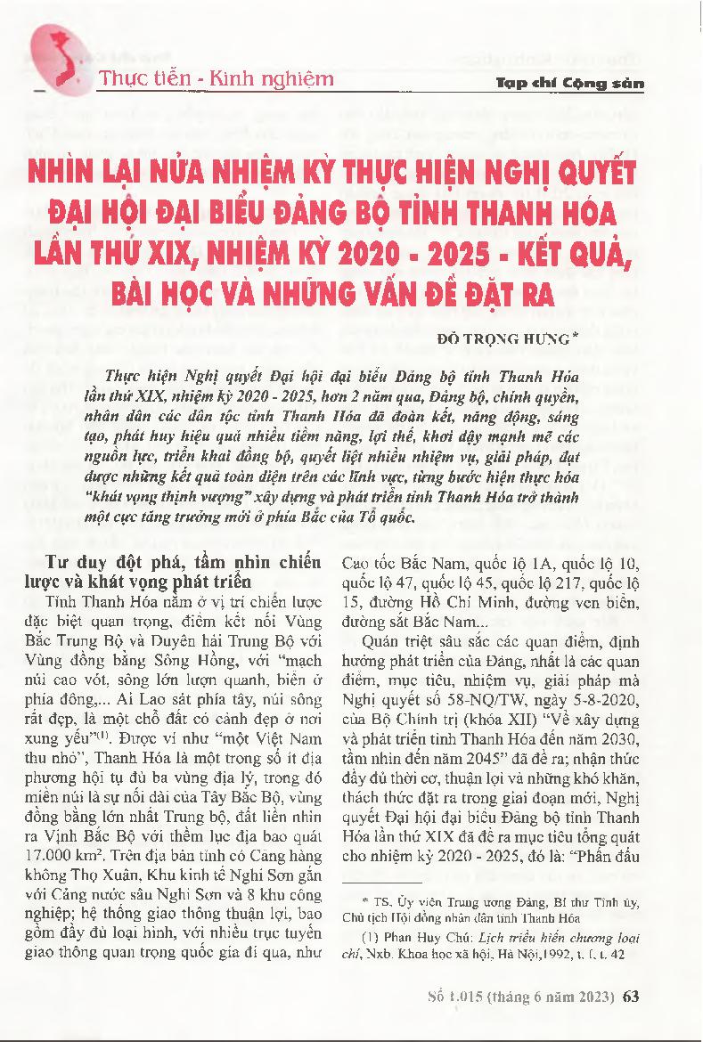 Nhìn lại nửa nhiệm kỳ thực hiện Nghị quyết Đại hội đại biểu Đảng bộ tỉnh Thanh Hóa lần thứ XIX, nhiệm kỳ 2020 - 2025 - Kết quả, bài học và những vấn đề đặt ra