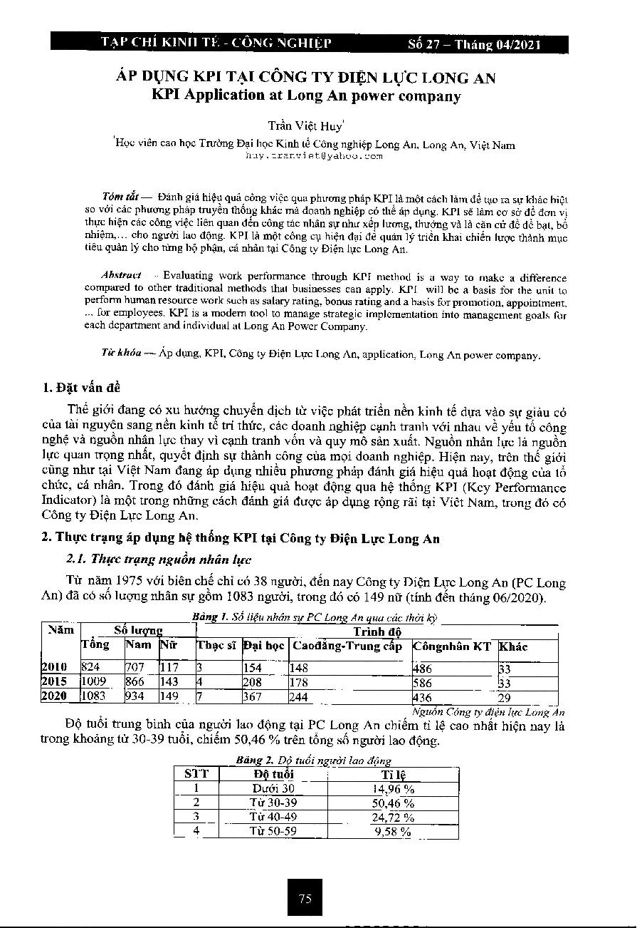 Áp dụng KPI tại Công ty Điện lực Long An = KPI Application at Long An power company