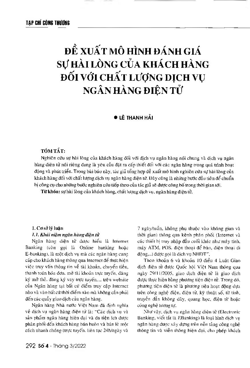 Đề xuất mô hình nghiên cứu sự hài lòng của khách hàng đối với chất lượng dịch vụ ngân hàng điện tử = Preparing the research model for the customer satisfaction with the quality of e-banking services