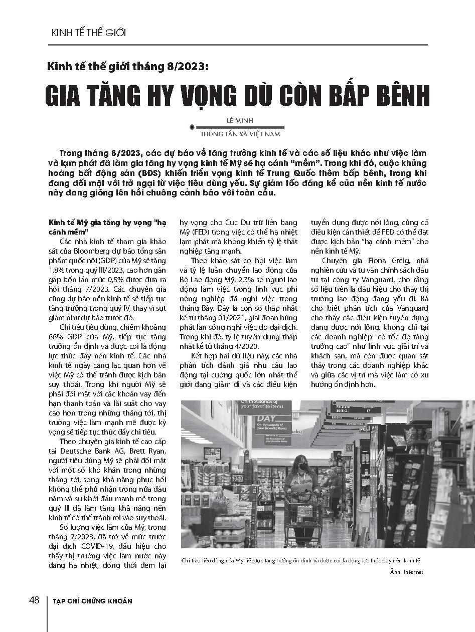 Kinh tế thế giới tháng 8/2023: Gia tăng hy vọng dù còn bấp bênh