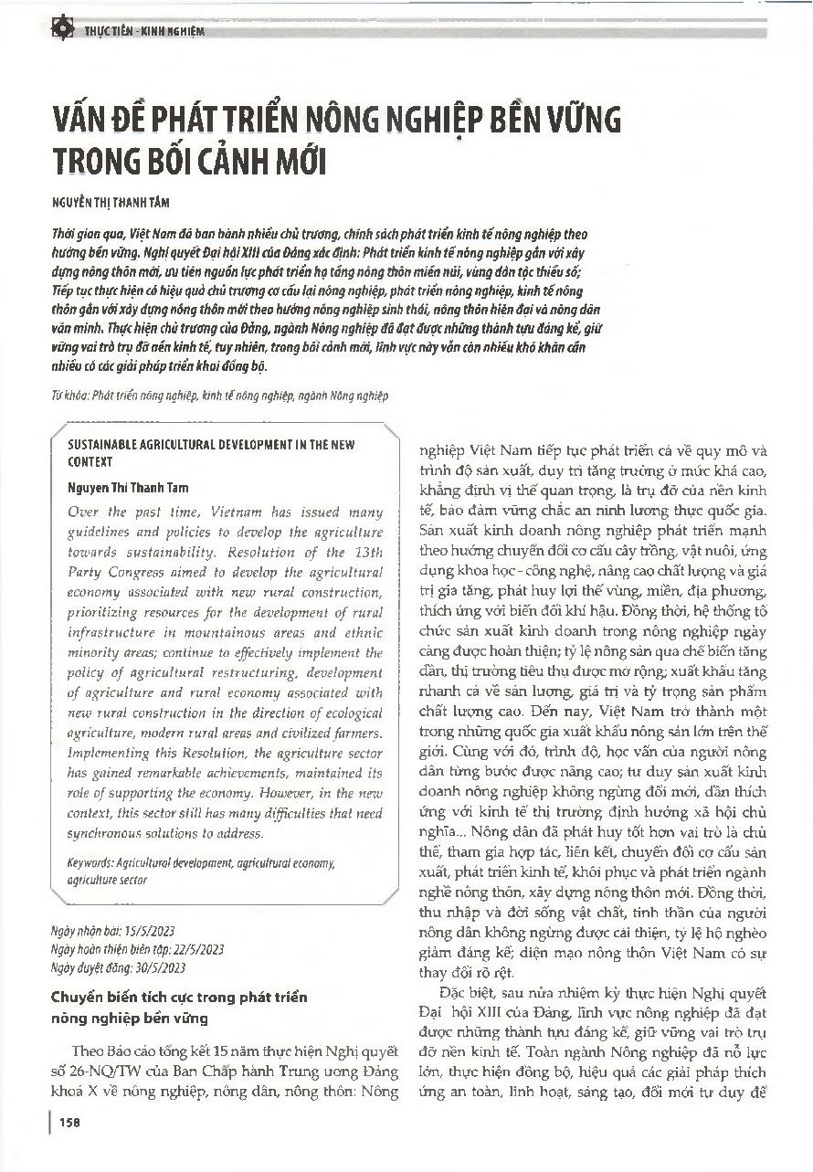 Vấn để phát triển nông nghiệp bền vững trong bối cảnh mới