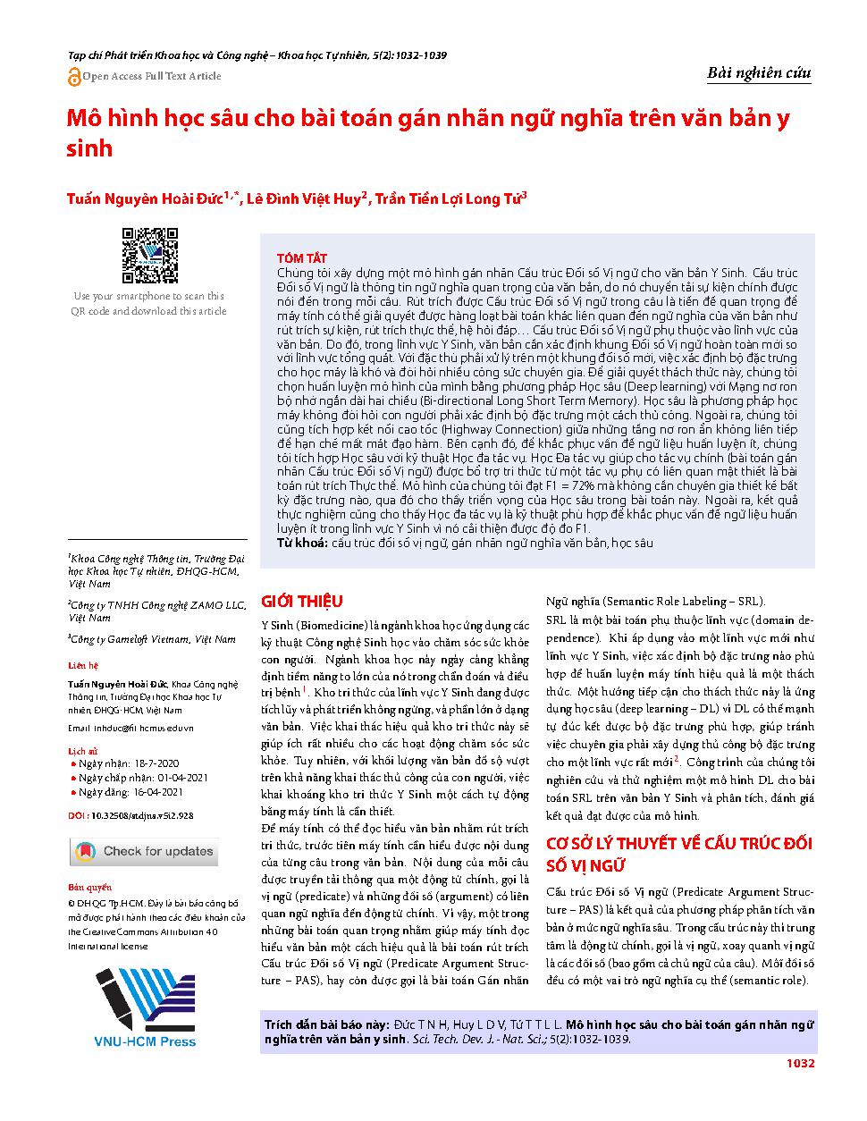 Mô hình học sâu cho bài toán gán nhãn ngữ nghĩa trên văn bản y sinh