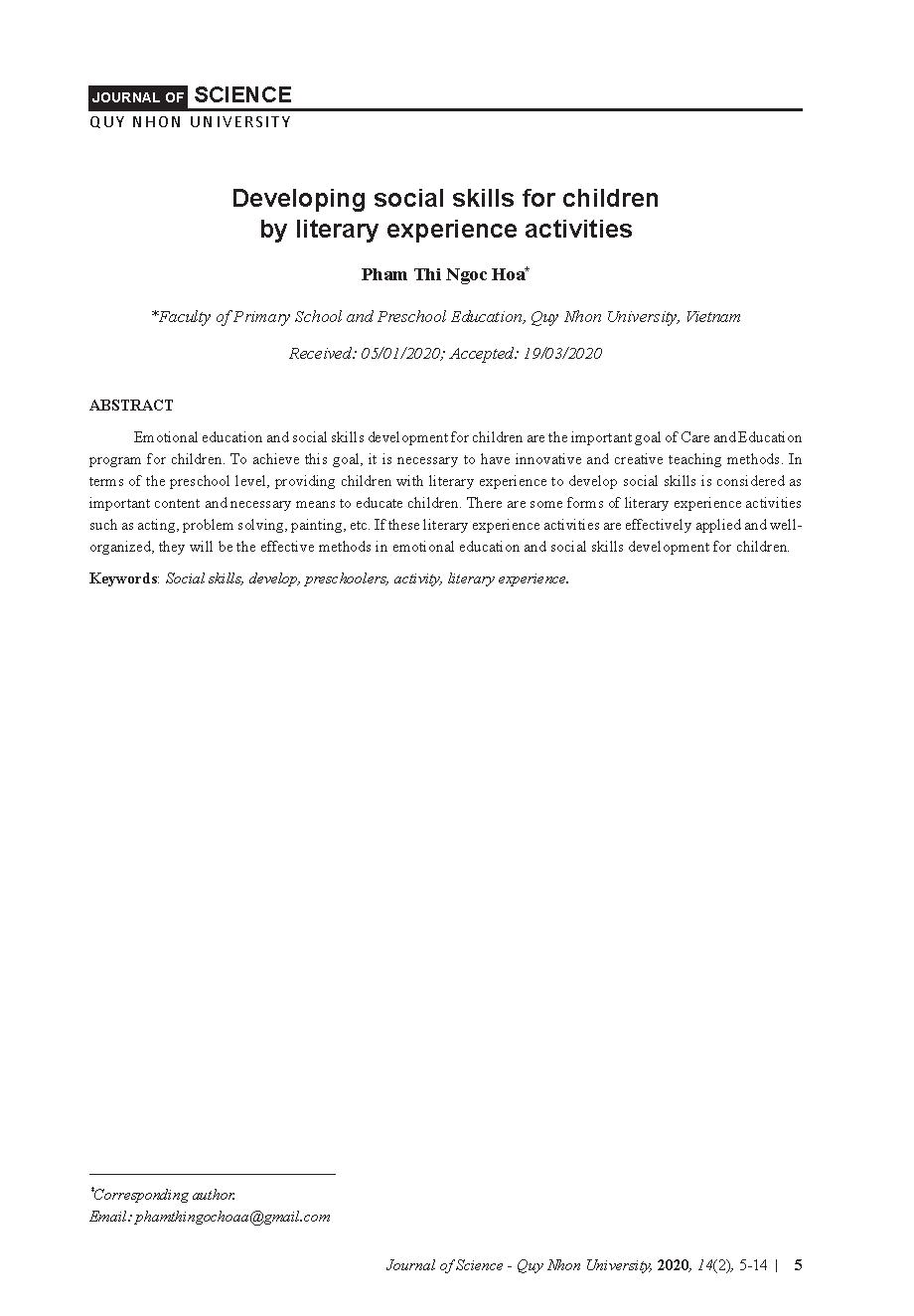 Phát triển kỹ năng xã hội cho trẻ mầm non qua hoạt động trải nghiệm văn học = Developing social skills for children by literary experience activities