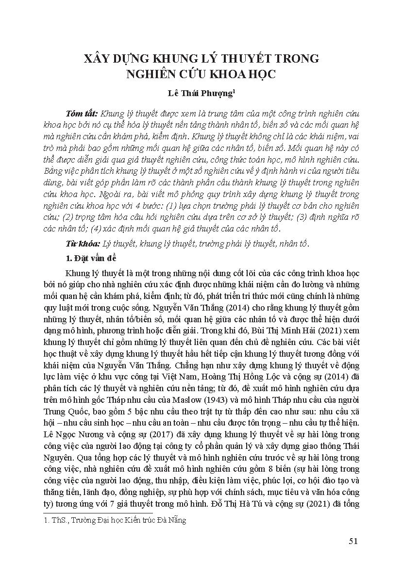 Xây dựng khung lý thuyết trong nghiên cứu khoa học = Building theory framework in scientific research