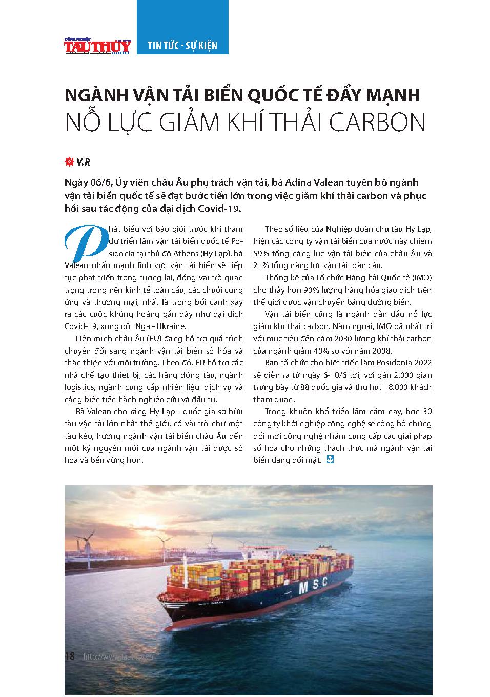 Ngành vận tải biển quốc tế đẩy mạnh nỗ lực giảm khí thải carbon = International shipping industry accelerates efforts to reduce carbon emissions