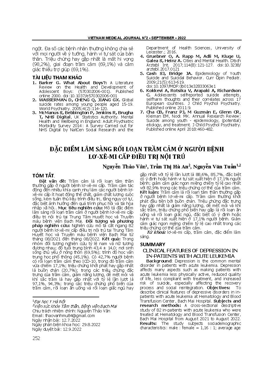Đặc điểm lâm sàng rối loạn trầm cảm ở người bệnh lơ-xê-mi cấp điều trị nội trú