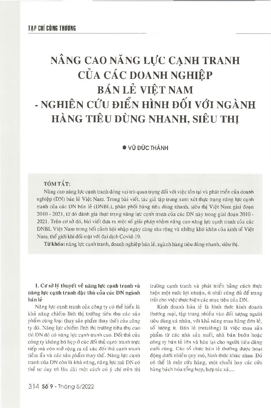 Nâng cao năng lực cạnh tranh của các doanh nghiệp bán lẻ Việt Nam - Nghiên cứu điển hình đối với ngành hàng tiêu dùng nhanh, siêu thị = Enhancing competitiveness of Vietnamese retail enterprises including fast-moving consumer goods distributors and superm