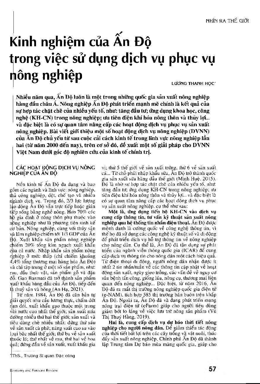 Kinh nghiệm của Ấn Độ trong việc sử dụng dịch vụ phục vụ nông nghiệp