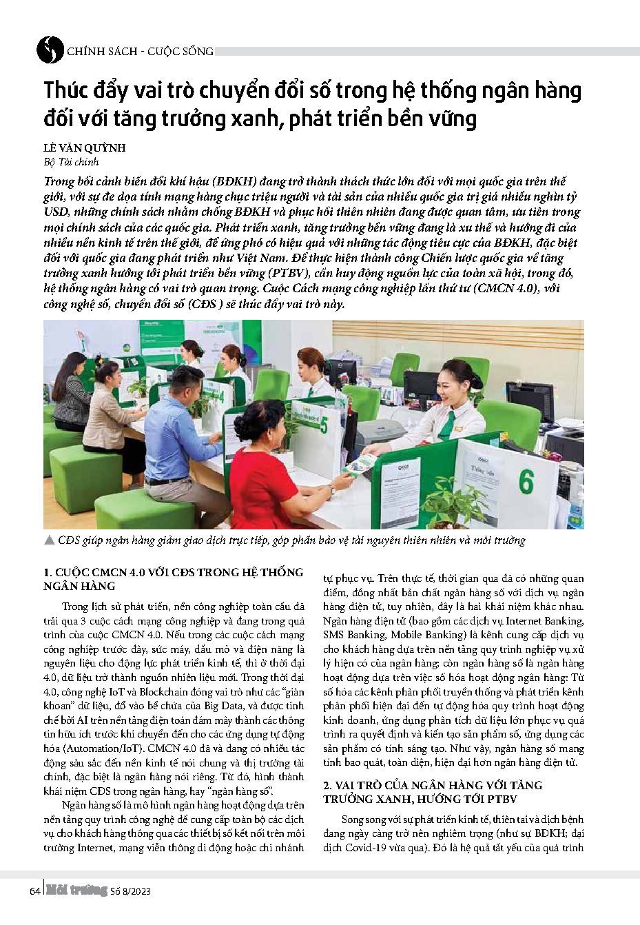 Thúc đẩy vai trò chuyển đổi số trong hệ thống ngân hàng đối với tăng trưởng xanh, phát triển bền vững