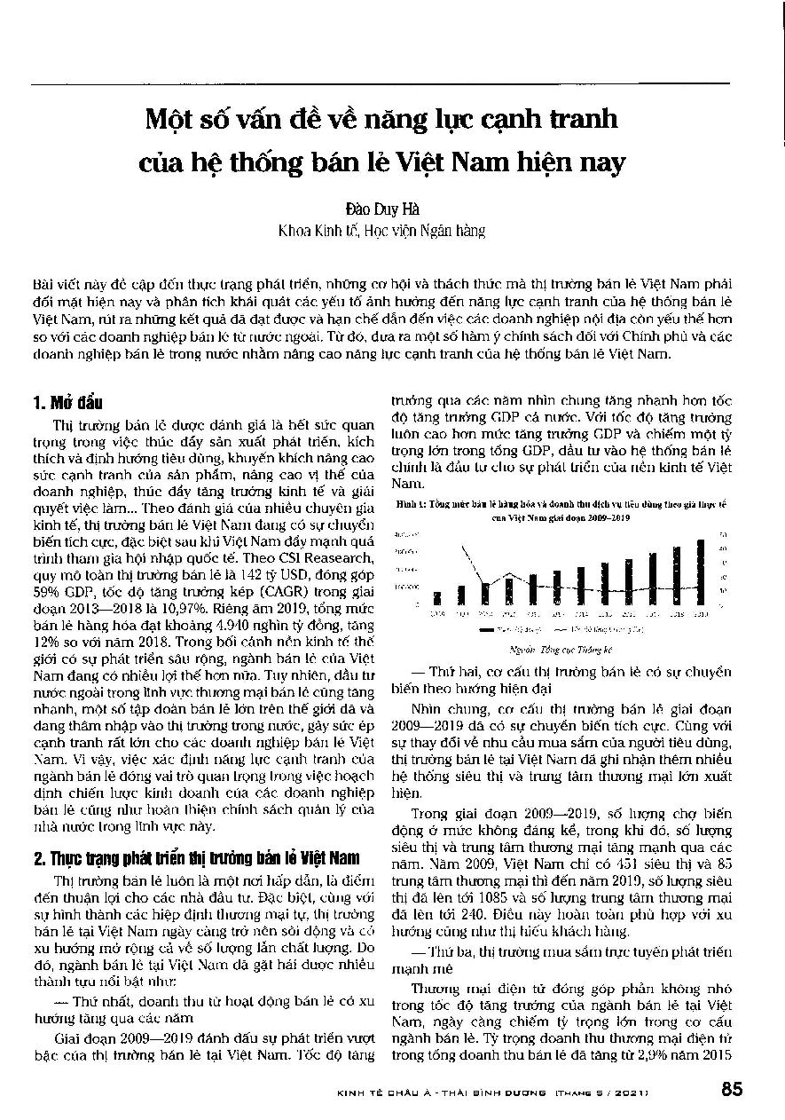 Một số vấn đề về năng lực cạnh tranh của hệ thống bán lẻ Việt Nam hiện nay