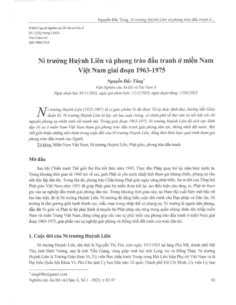 Ni trưởng Huỳnh Liên và phong trào đấu tranh ở miền Nam Việt Nam giai đoạn 1963-1975 = The most venerable Huynh Lien and the struggle movement in South Vietnam during the period 1963-1975