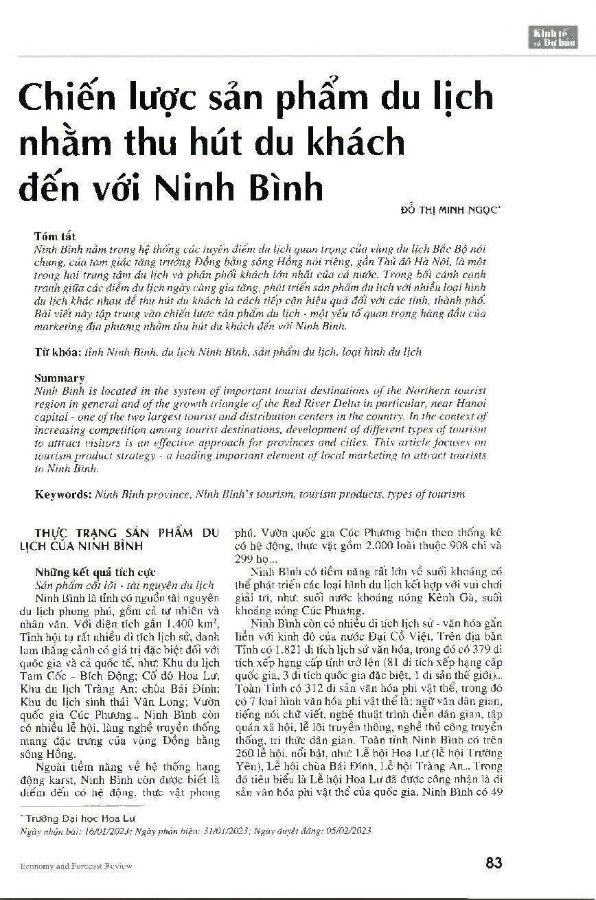 Chiến lược sản phẩm du lịch nhằm thu hút du khách đến với Ninh Bình = Tourism product strategy to attract tourists to Ninh Binh