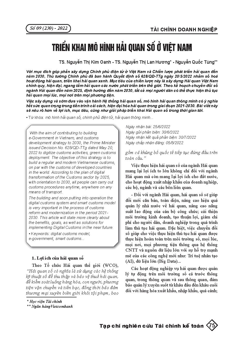 Triển khai mô hình hải quan số ở Việt Nam = The implementation of digital customs in Vietnam