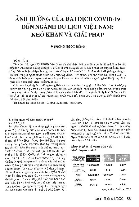 Ảnh hưởng của đại dịch Covid-19 đến ngành du lịch Việt Nam: Khó khăn và giải pháp = The impact of Covid-19 pandemic on vietnam's tourism industry: Challenges and solutions