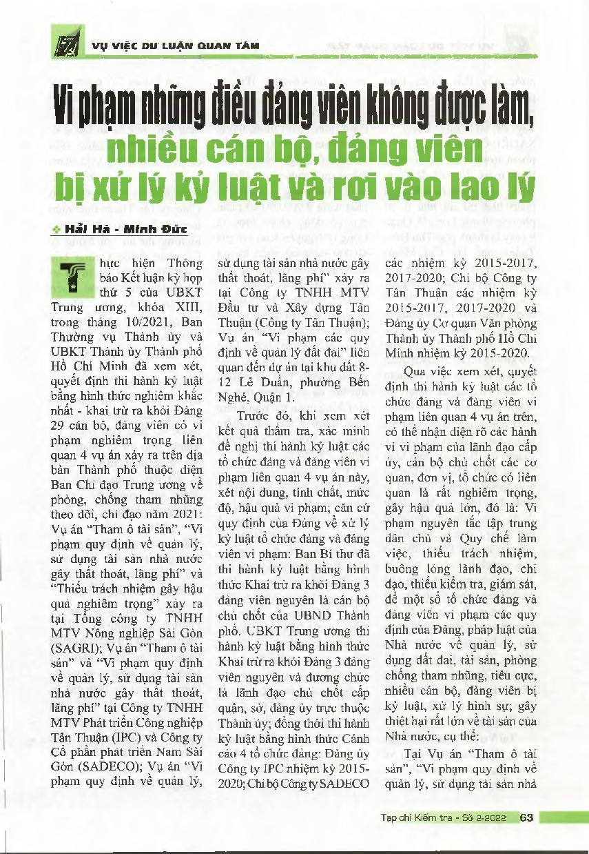 Vi phạm những điều đảng viên không được làm, nhiều cán bộ, đảng viên bị xử lý kỷ luật và rơi vào lao lý