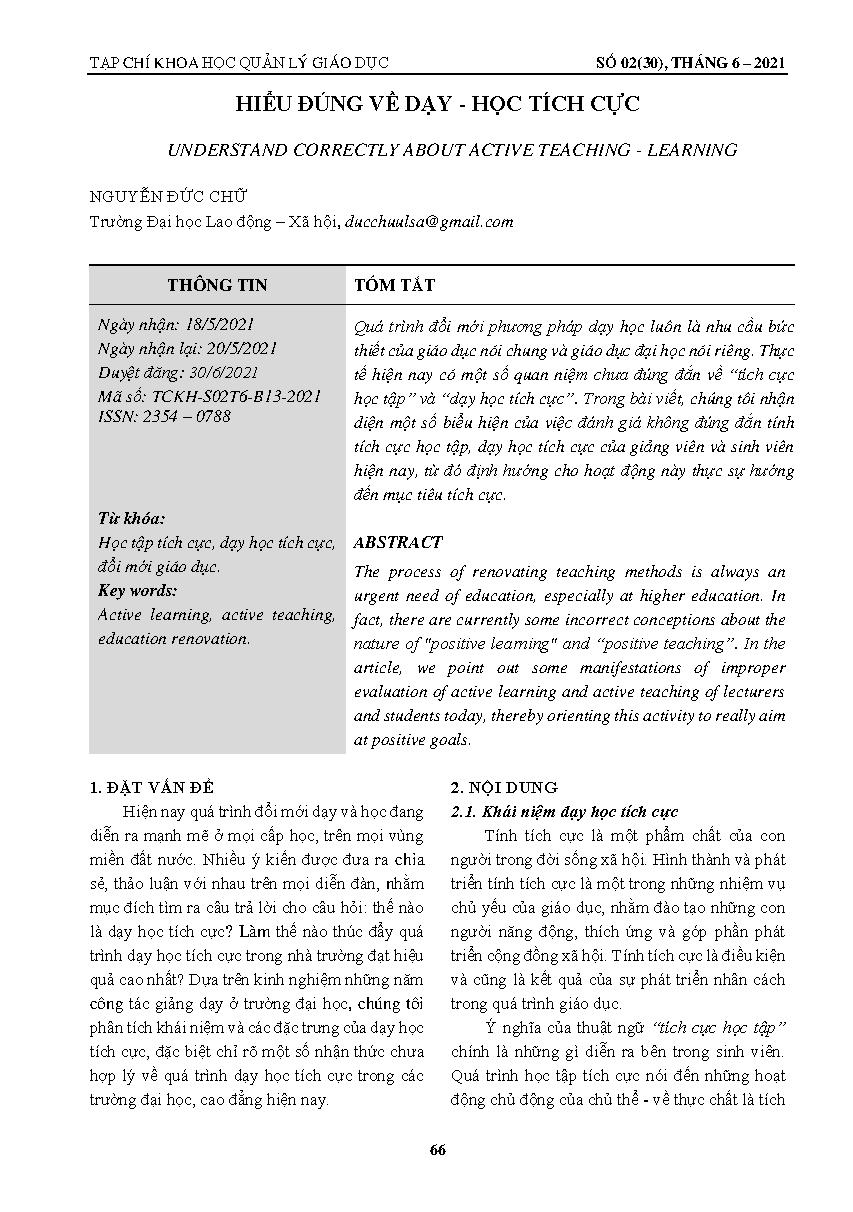 Hiểu đúng về dạy - học tích cực = UNDERSTAND CORRECTLY ABOUT ACTIVE TEACHING - LEARNING