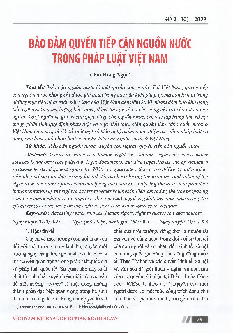 Bảo đảm quyến tiếp cận nguổn nước trong pháp luật Việt Nam = Ensuring the right to access water in Vietnamese law