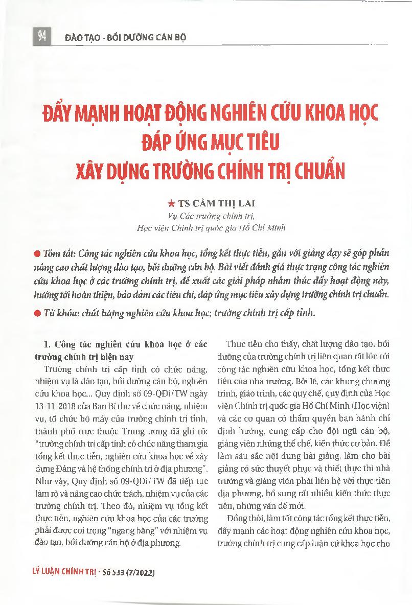 Đẩy mạnh hoạt động nghiên cứu khoa học đáp ứng mục tiêu xây dựng trường chính trị chuẩn