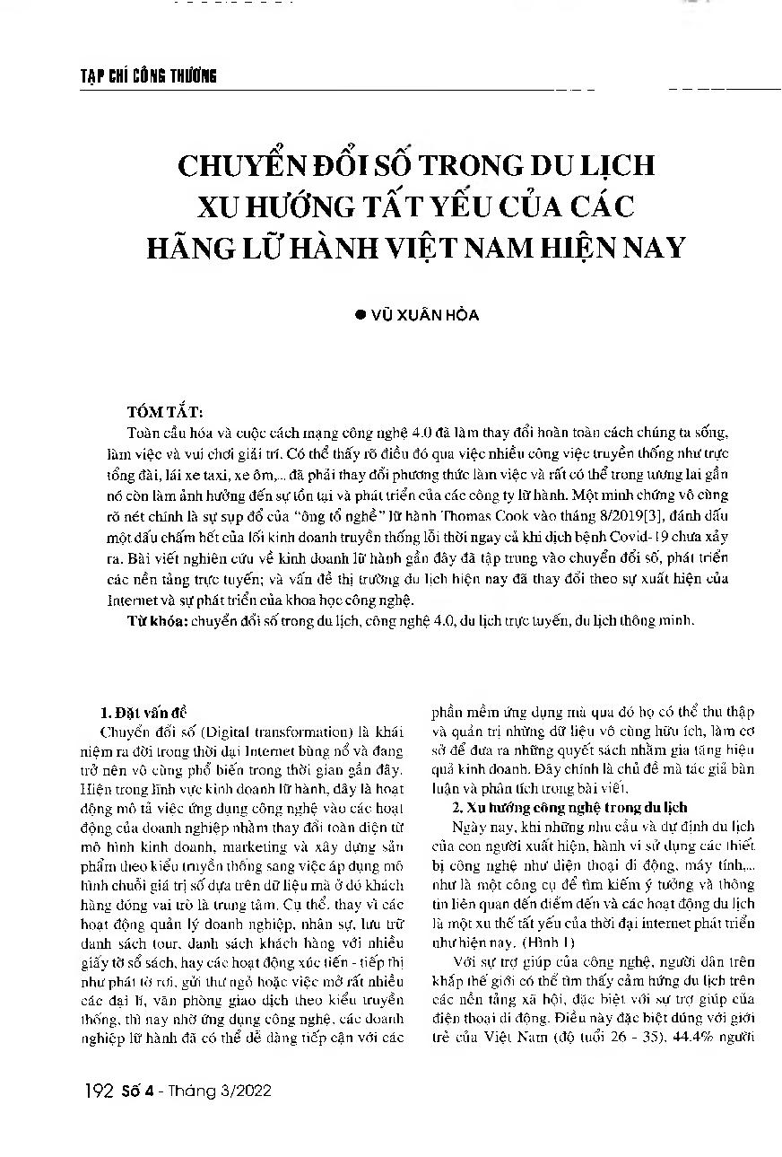 Chuyển đổi số trong du lịch xu hướng tất yếu của các hãng lữ hành Việt Nam hiện nay = Digital transformation - An inevitable development trend for travel agencies in Vietnam