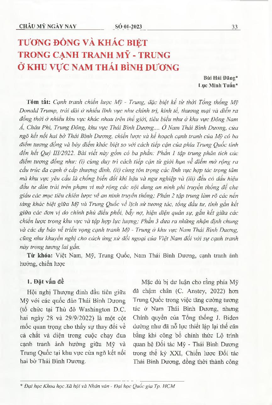 Tương đòng và khác biệt trong cạnh tranh mỹ - trung ở khu vực nam Thái Bình Dương