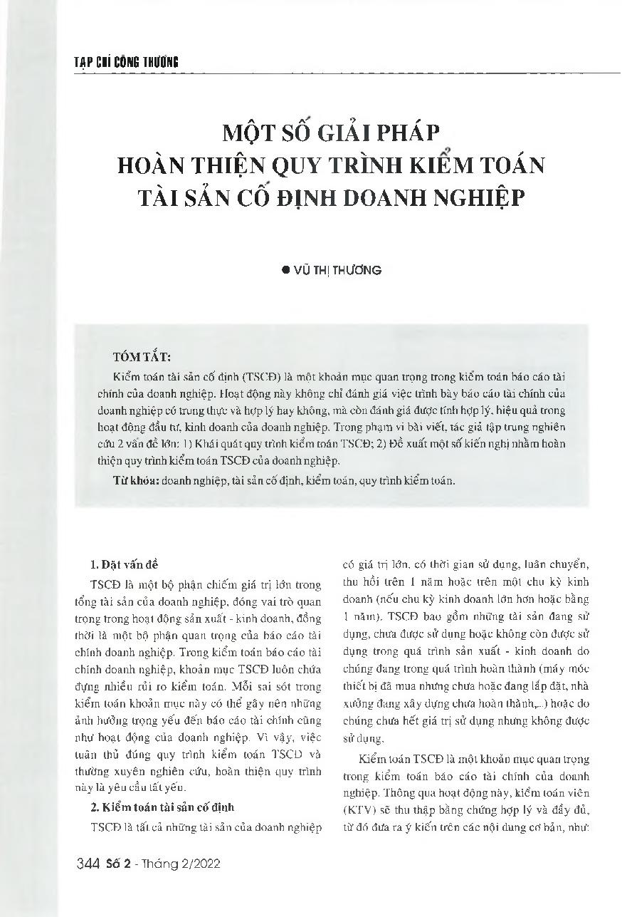 Giải pháp hoàn thiện quy trình kiểm toán tài sản cố định = Some recommendations to improve the audit procedure for fixed assets