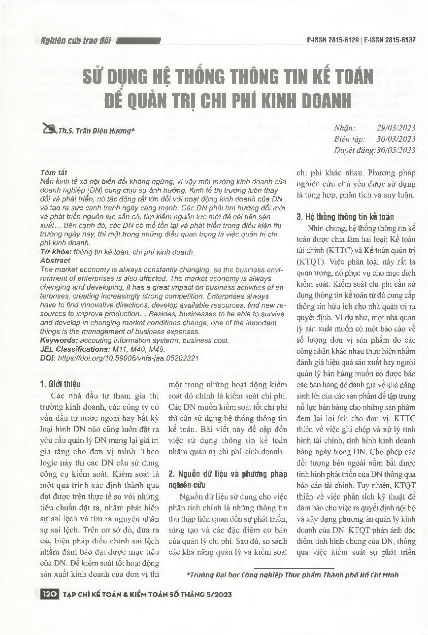 Sử dụng hệ thống thông tin kế toán để quản trị chi phí kinh doanh = The use of accouting information system for the management of business costs