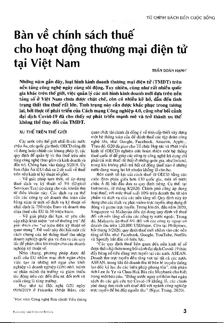 Bàn về chính sách thuế cho hoạt động thương mại điện tử tại Việt Nam