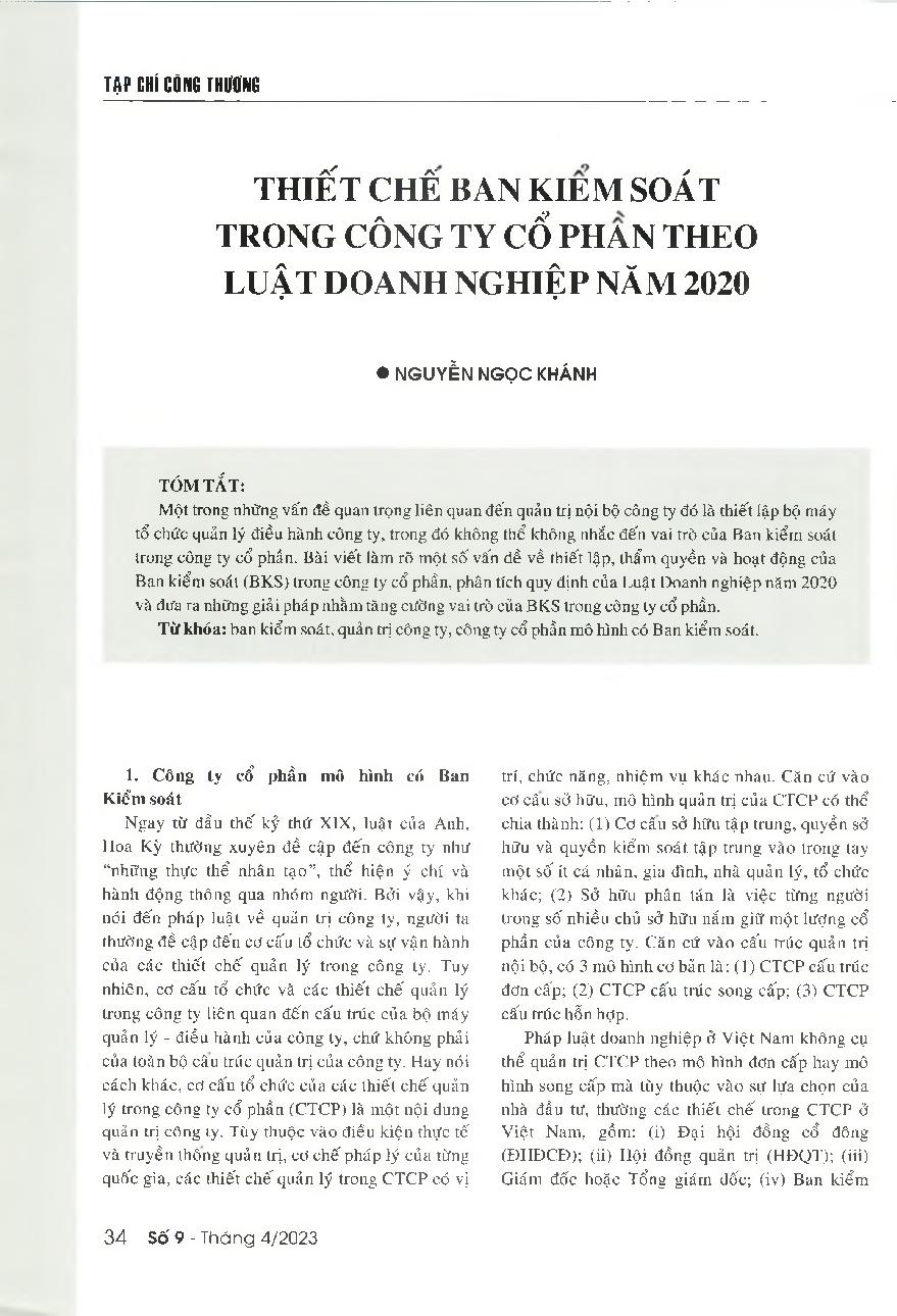 Thiết chế Ban kiểm soát trong công ty cổ phần theo Luật Doanh nghiệp năm 2020