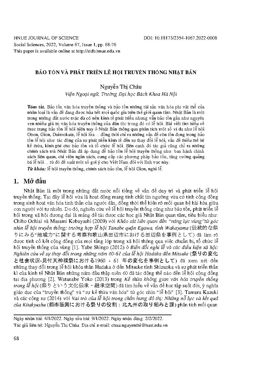Bảo tồn và phát triển lễ hội truyền thống Nhật Bản = Conservation and development of Japanese traditional festival