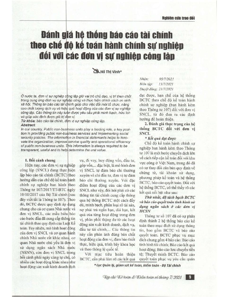 Đánh giá hệ thống báo cáo tài chính theo chế độ kế toán hành chính sự nghiệp đối với các đơn vị sự nghiệp công lập
