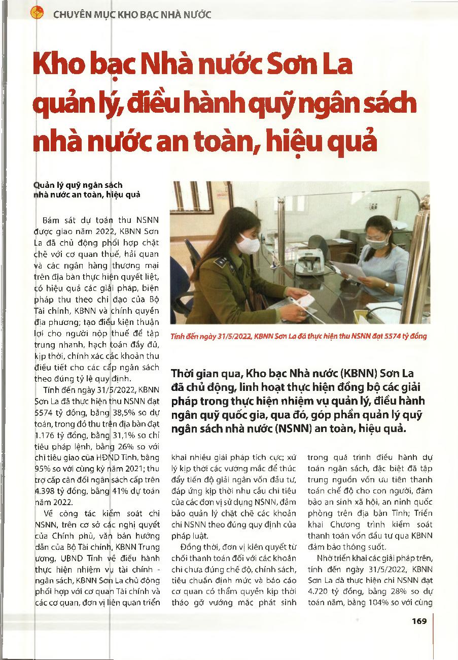 Kho bạc Nhà nước Sơn La quản lý, điều hành quỹ ngân sách nhà nước an toàn, hiệu quả = Son La state Treasury manages and operates state budget funds safely and effectively