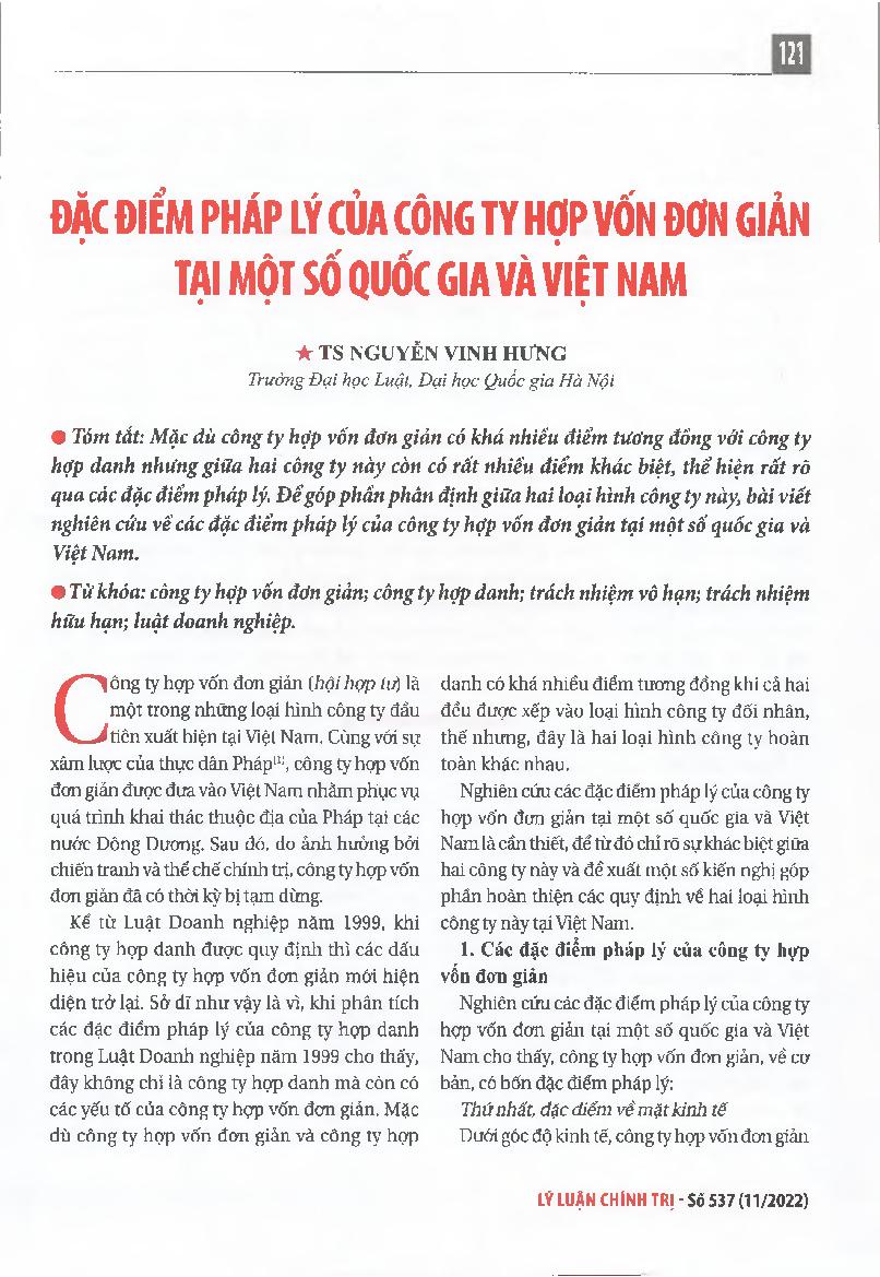 Đặc điểm pháp lý của công ty hợp vốn đơn giản tại một số quốc gia và Việt Nam