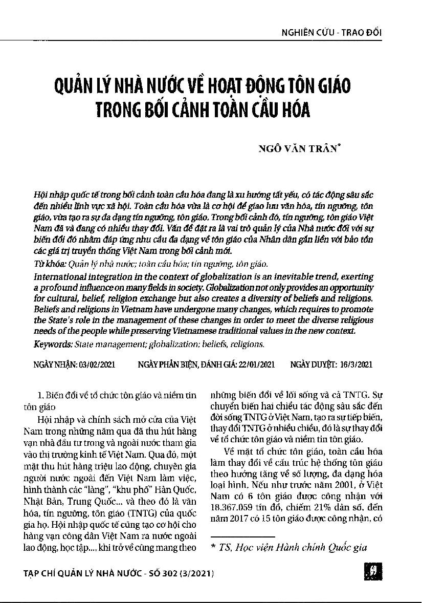 Quản lý nhà nước về hoạt động tôn giáo trong bối cảnh toàn cầu hóa
