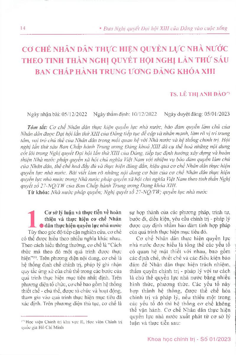 Cơ chế nhân dân thực hiện quyền lực nhà nước theo tinh thần nghị quyết Hội nghị lần thứ sáu Ban Chấp hành Trung ương đảng khóa XIII
