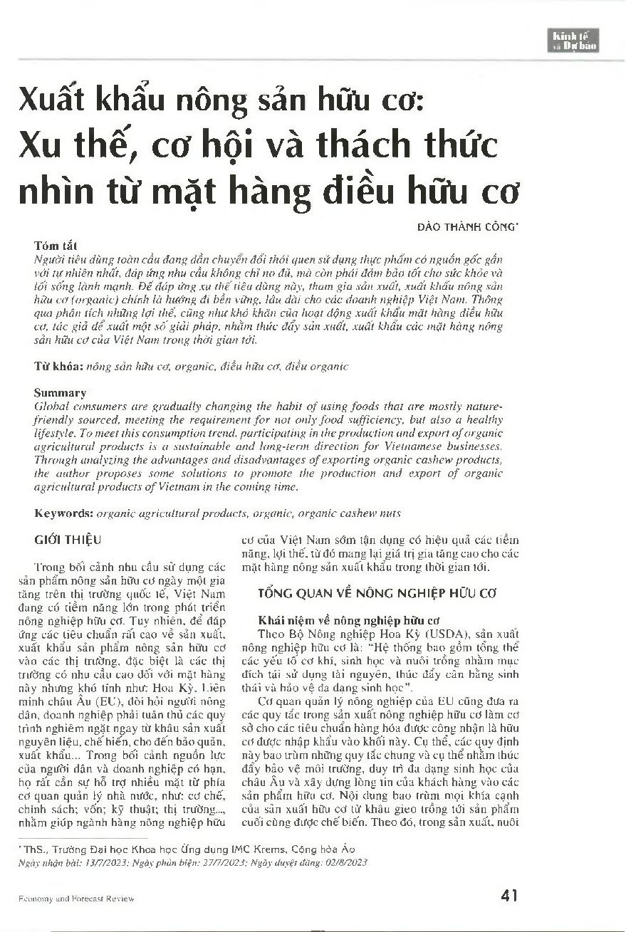 Xuất khẩu nông sản hữu cơ: Xu thế cơ hội và thách thức nhìn từ mặt hàng điều hữu cơ