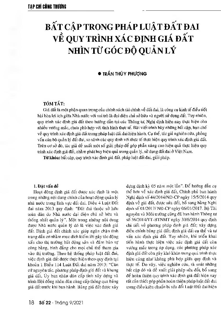 Bất cập trong pháp luật đất đai về quy trình xác định giá đất nhìn từ góc độ quản lý = Shortcomings in regulations on land price determination process from land management perspectives