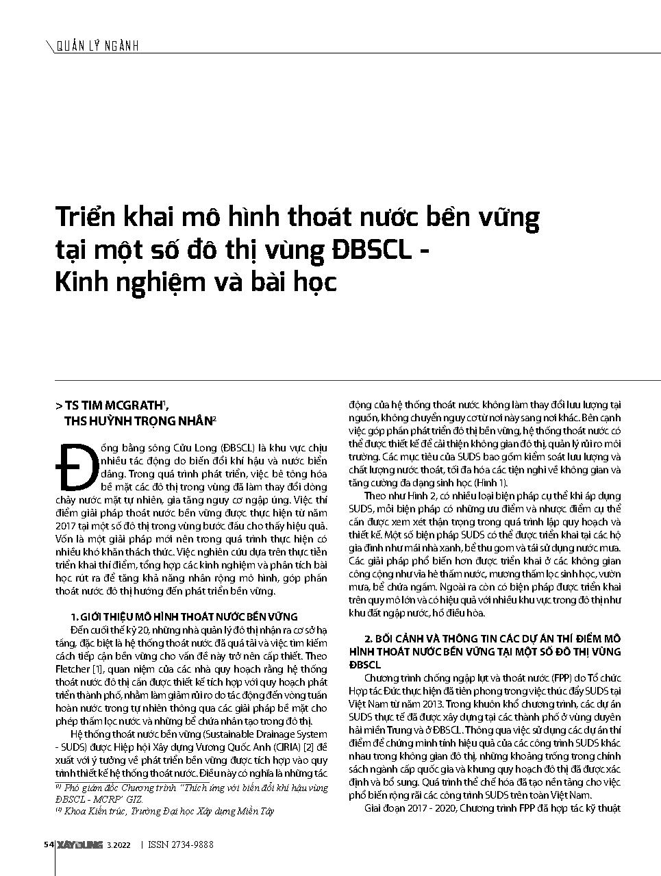 Triển khai mô hình thoát nước bền vững tại một số đô thị vùng ĐBSCL - Kinh nghiệm và bài học