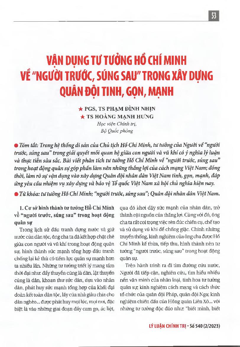 Vận dụng tư tưởng Hồ Chí Minh về "người trước, súng sau" trong xây dựng Quân đội tinh, gọn, mạnh