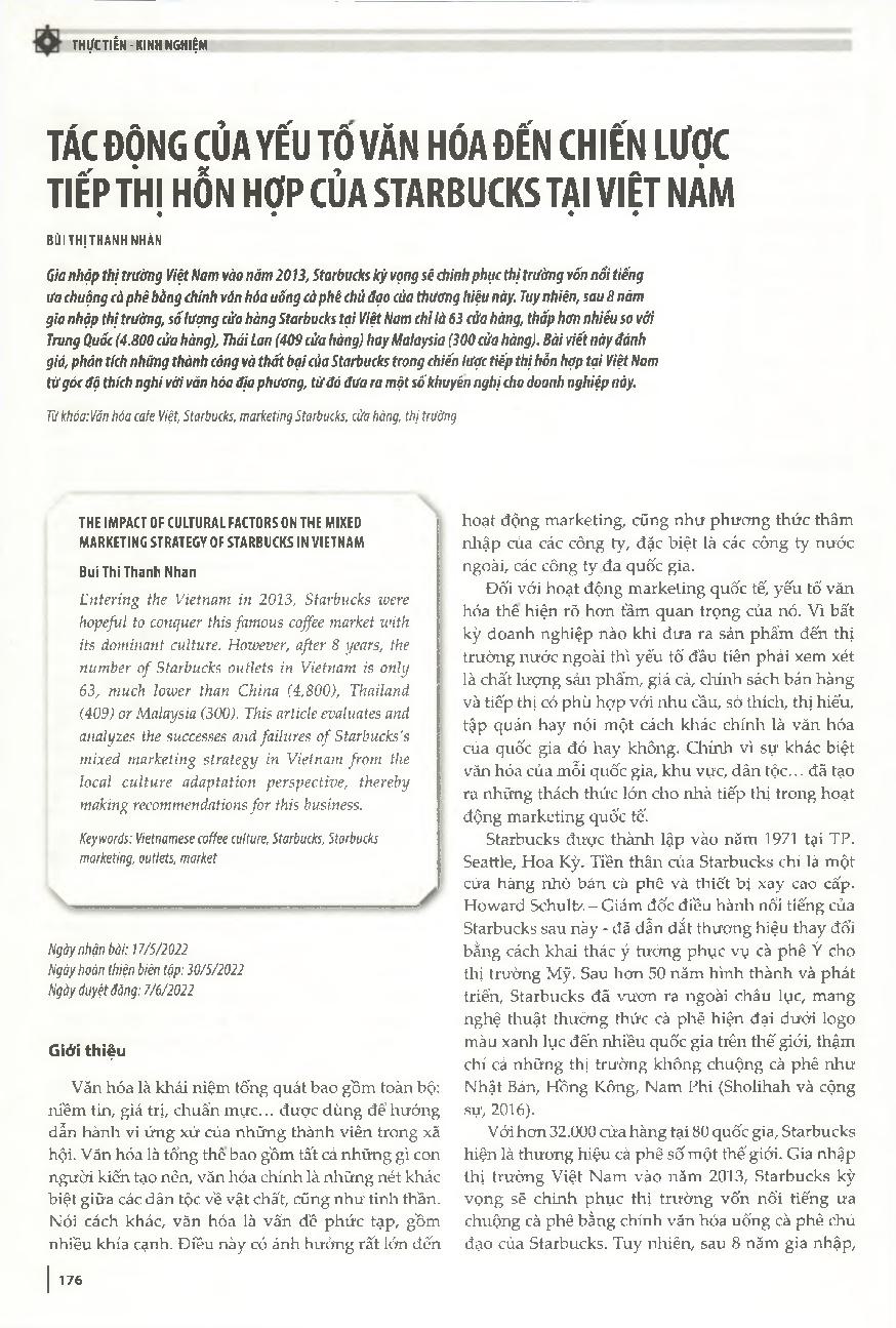 Tác động của yếu tố văn hóa đến chiến lược tiếp thị hỗn hợp của Starbucks tại Việt Nam = The impact of cultural factors on the mixed marketing strategy of Starbucks in Vietnam