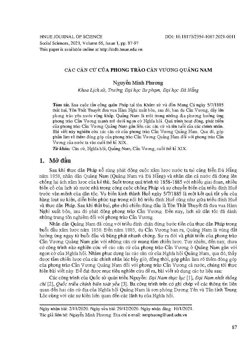 Các căn cứ của phong trào cần vương Quảng Nam = The Revolutionary Base Areas of Can Vuong Movement in Quang Nam