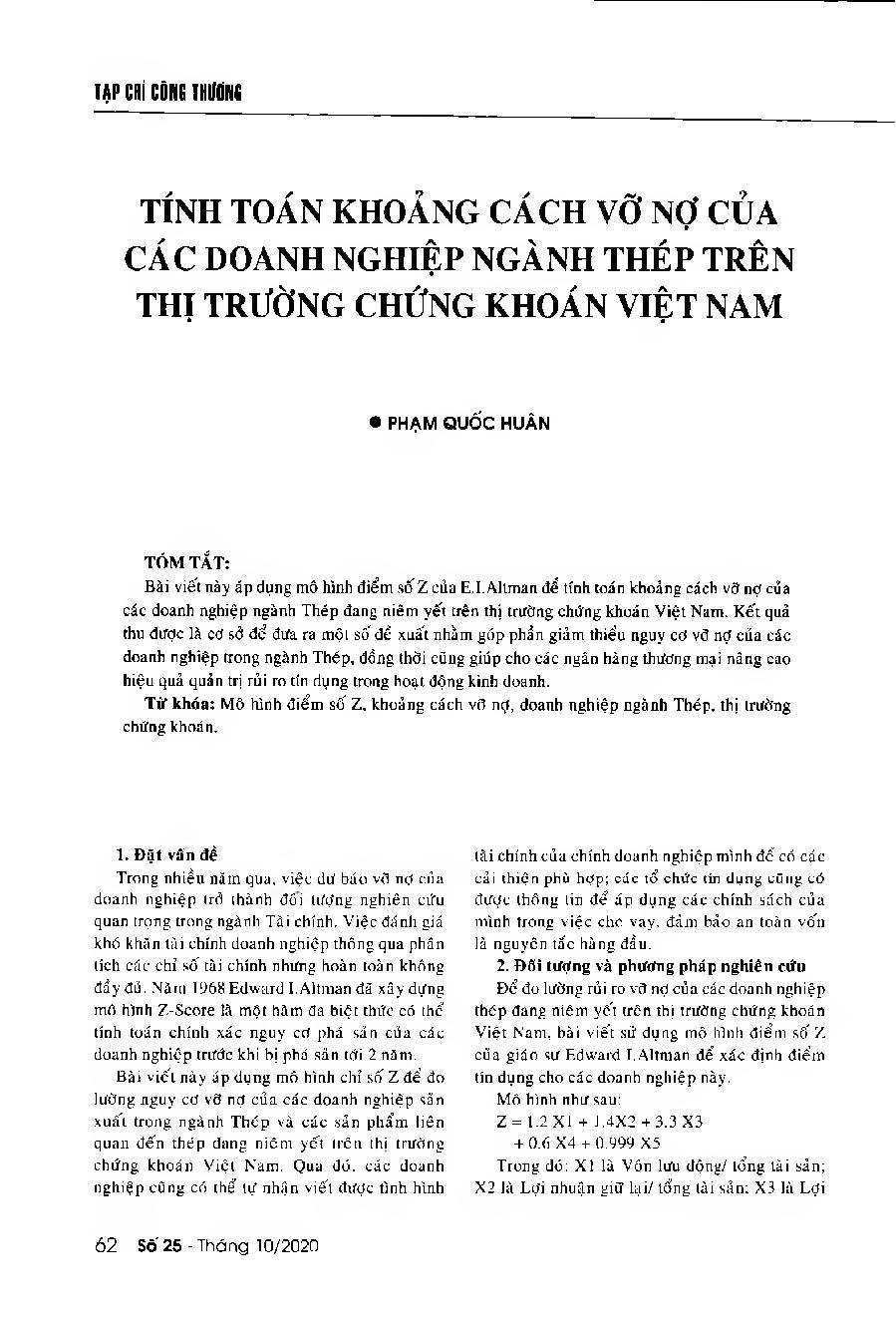 Tính toán khoảng cách vỡ nợ của các doanh nghiệp ngành thép trên thị trường chứng khoán Việt Nam = Determining the insolvency gap of listed steel firms in Vietnam