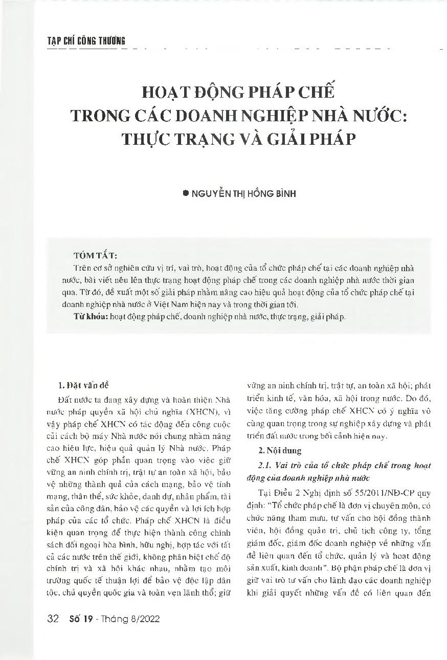 Hoạt động pháp chế trong các doanh nghiệp nhà nước: Thực trạng và giải pháp = Legal activities of Vietnamese state-owned enterprises: Current situation and solutions